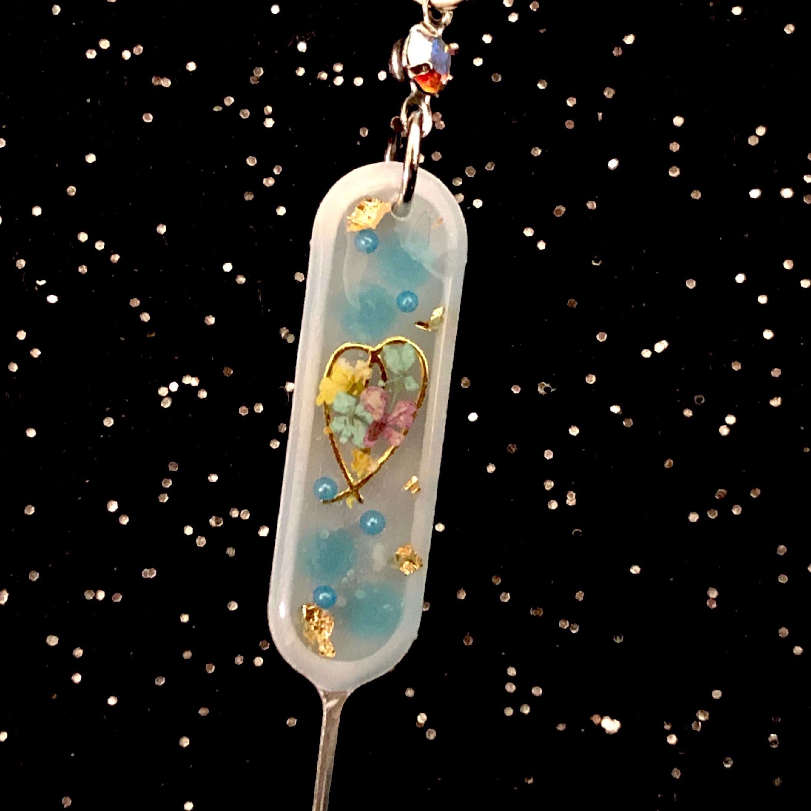 ミルキーホワイトのベースにワイヤーアートのハート、その中には小さなドライフラワーのお花でふわっとしたイメージになっています☆。.:*・゜