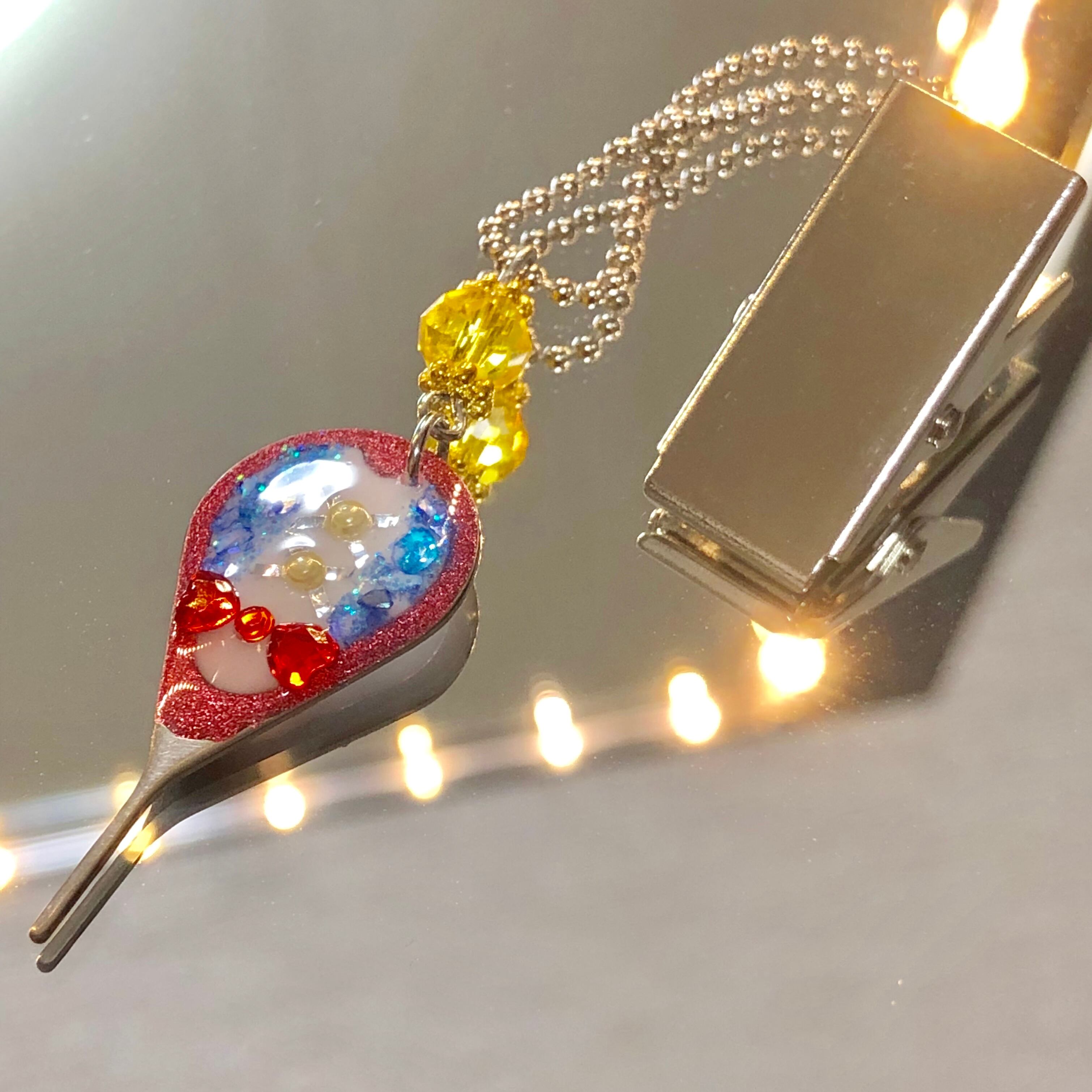ボールチェーンを付け、更に無くさないよう胸ポケットやノートなどに挟めるクリップ金具を付けた【改良型】です☆。.:*・゜