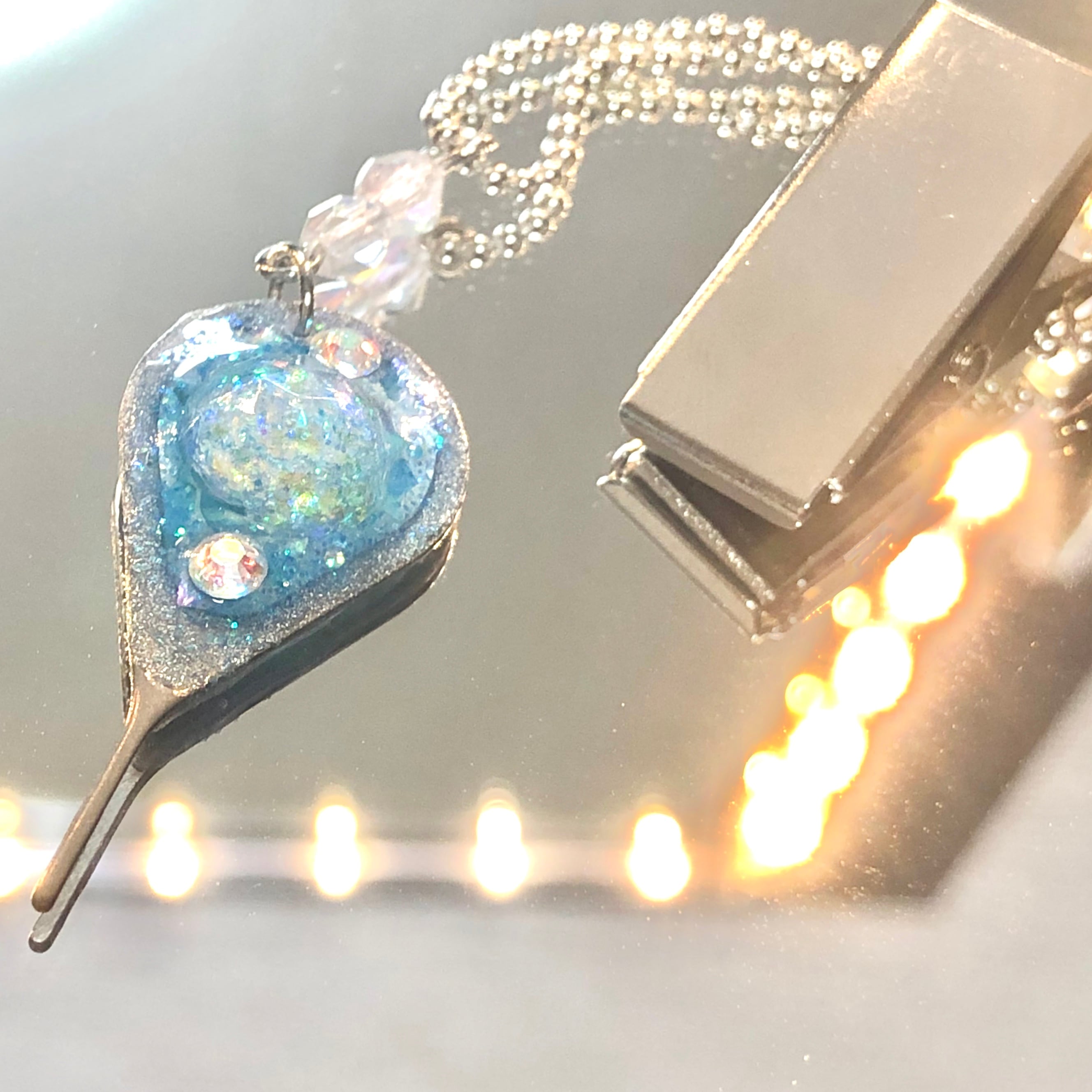 ガラスの靴のようなでガラスビジューにオーロラカラーのチェコビーズをお付けした華やかなSIMピンです