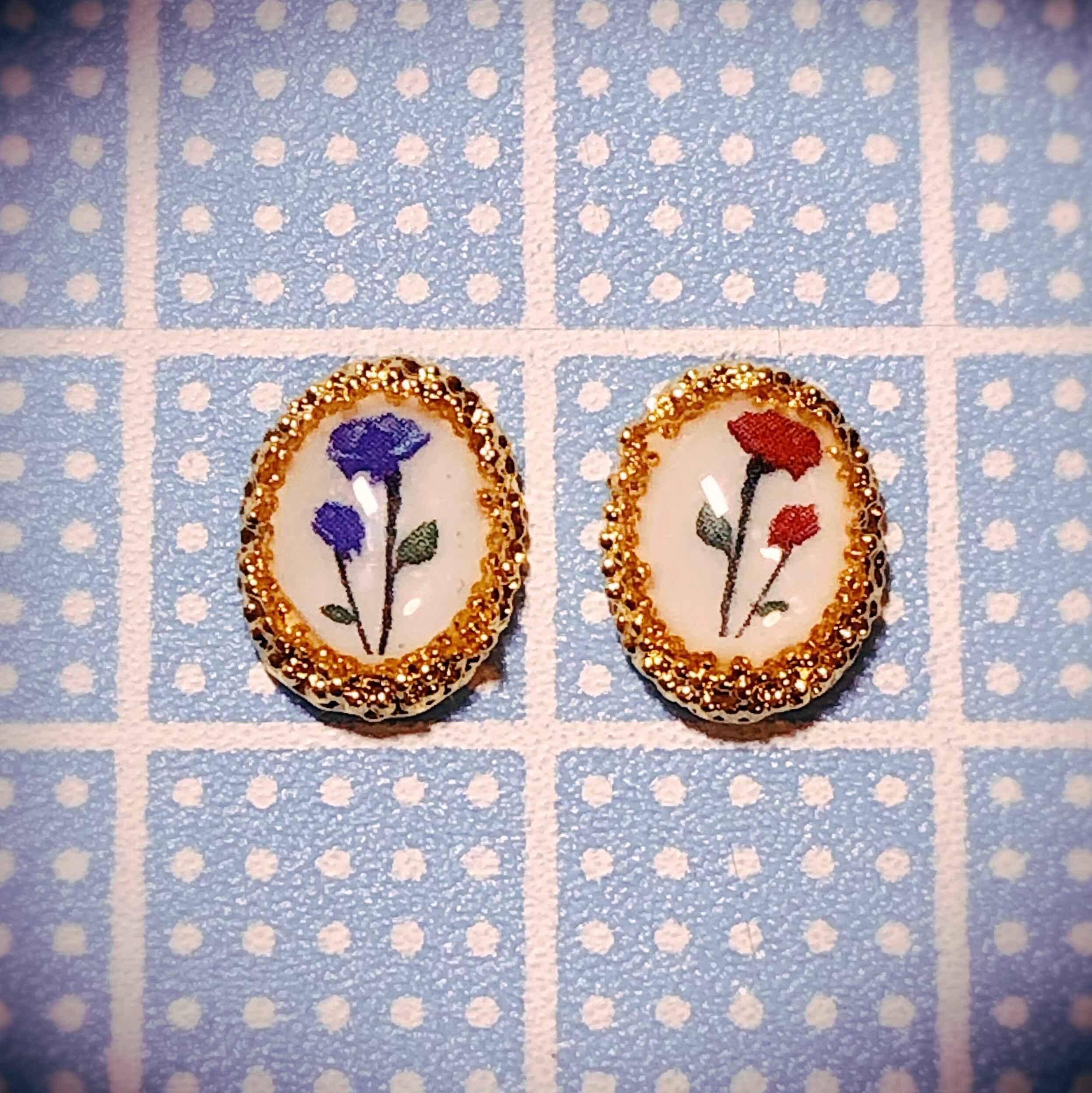 小さなパーツにシンプルな小花のシールを封入し、透明なレジンでぷっくりと立体感を持たせています