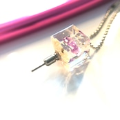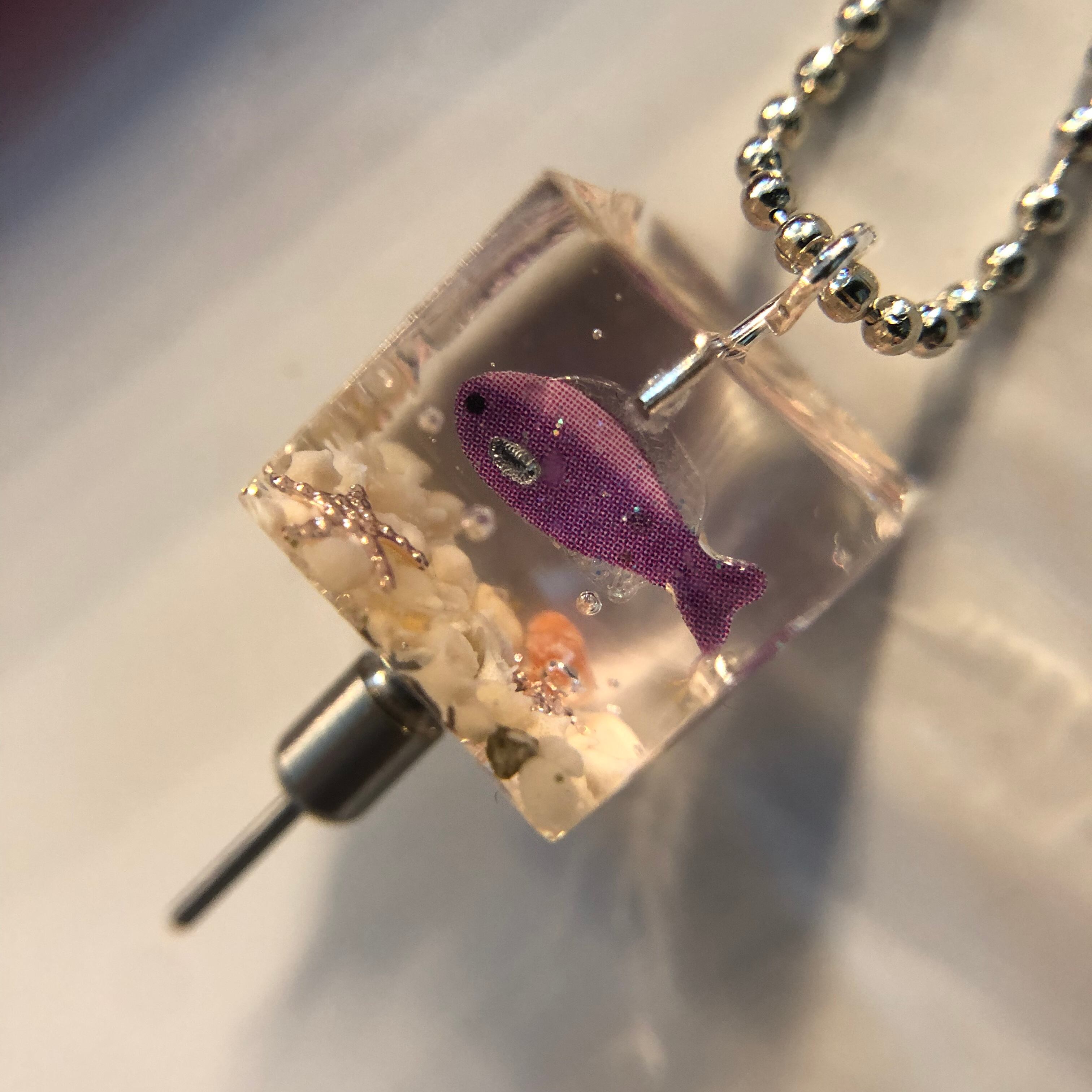 立体スクエアの中にピンクの小さなお魚さんが泳いでいるSIMピンです☆。.:*・゜