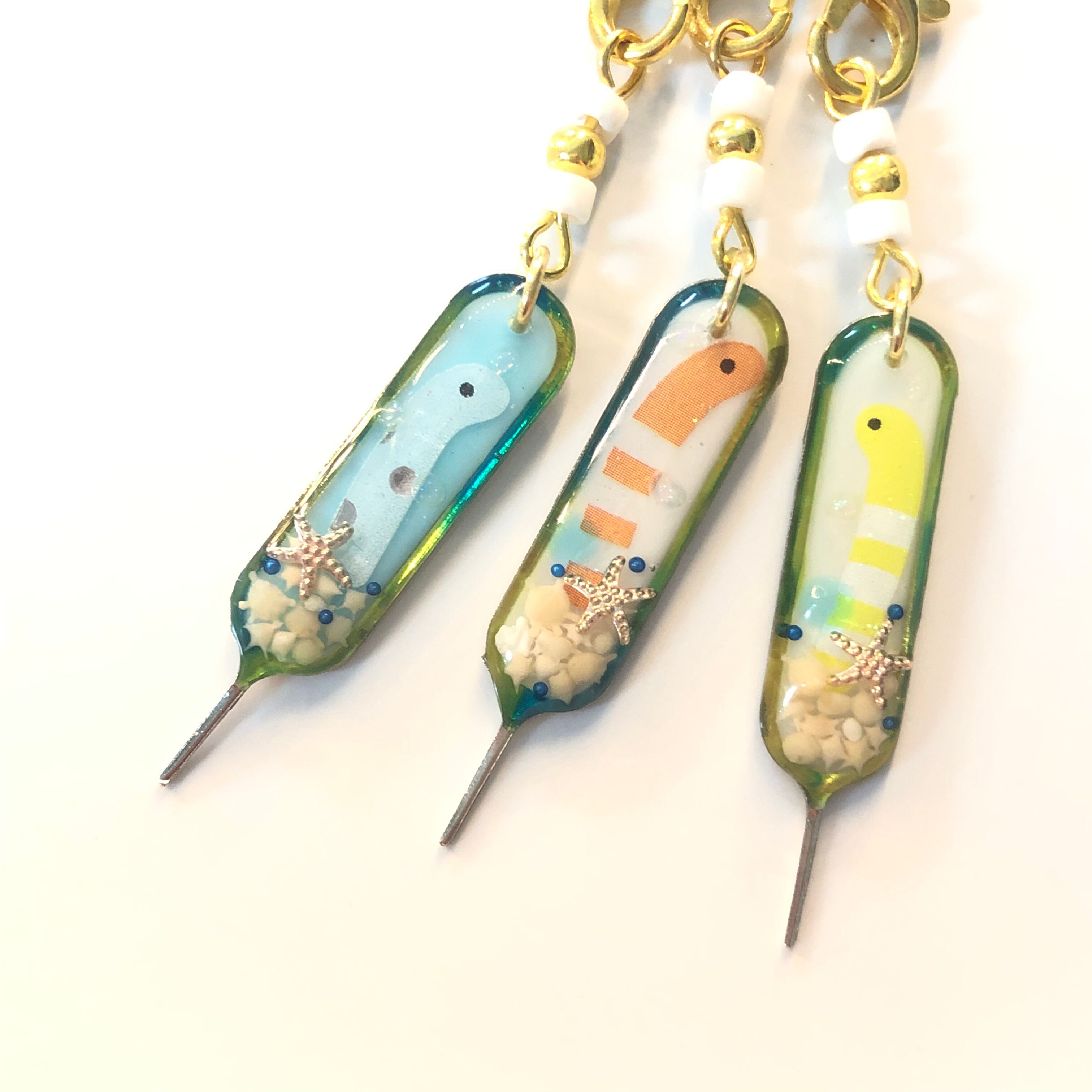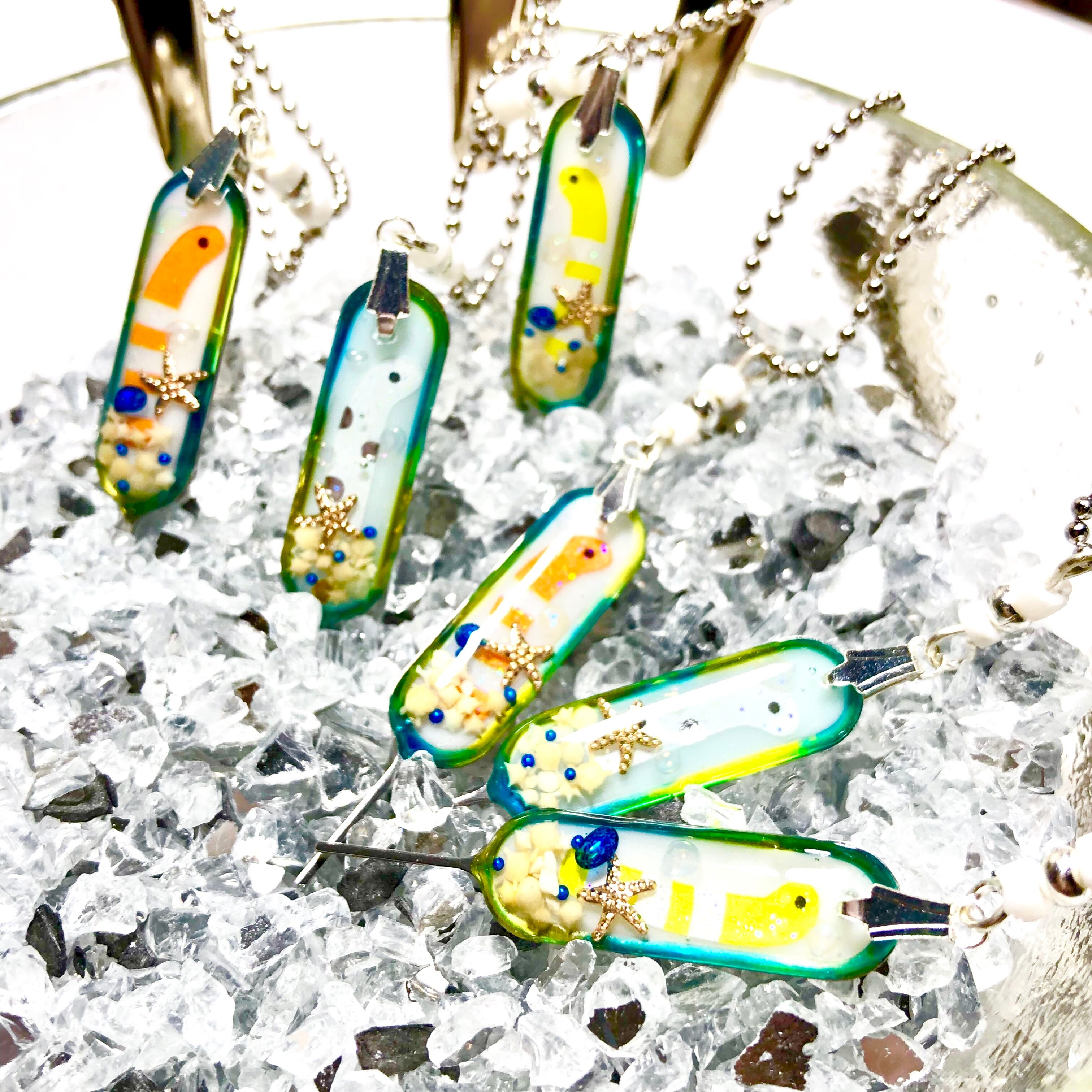 星の砂とスターフィッシュを封入し、その上からチンアナゴさんがひょっこりしている夏仕様のSIMピンです☆。.:*・゜