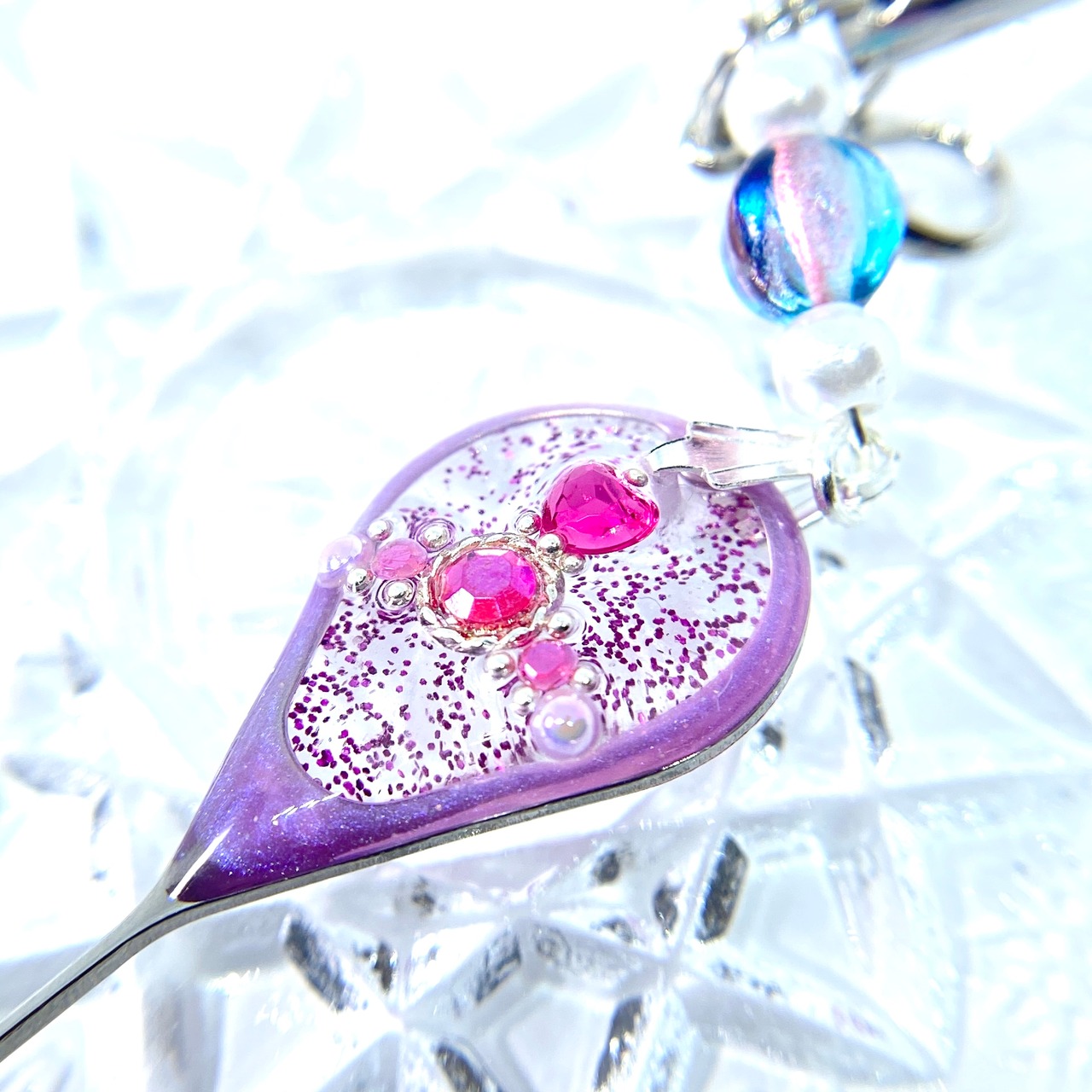 繋ぎはグラデーションのかかったガラスビーズと小ぶりなパールでプリンセス感高めです☆。.:*・゜