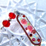 繋ぎのパーツはいちご色のアクリルビーズを使用しています