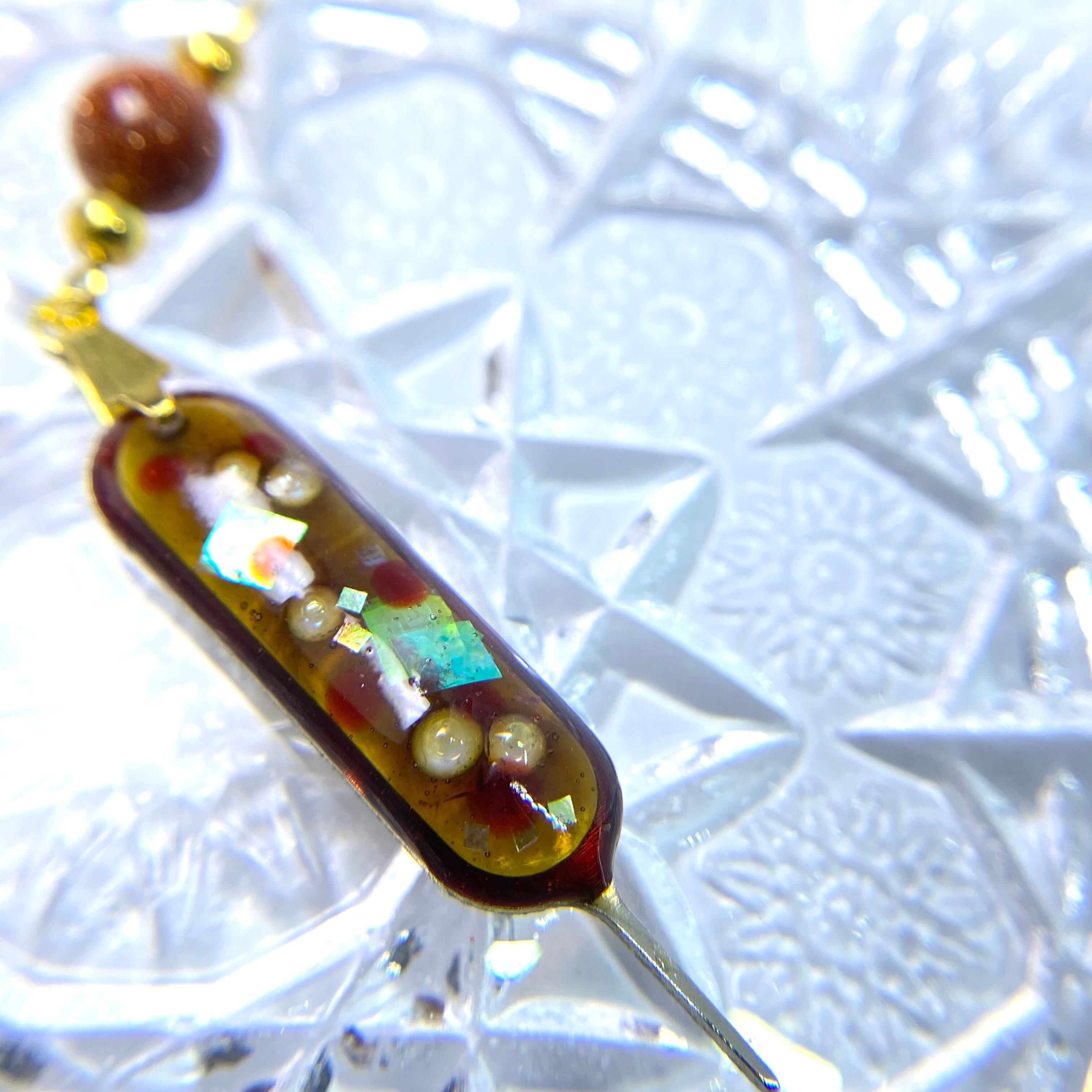 繋ぎのパーツは砂金石とメタルビーズを使用しています