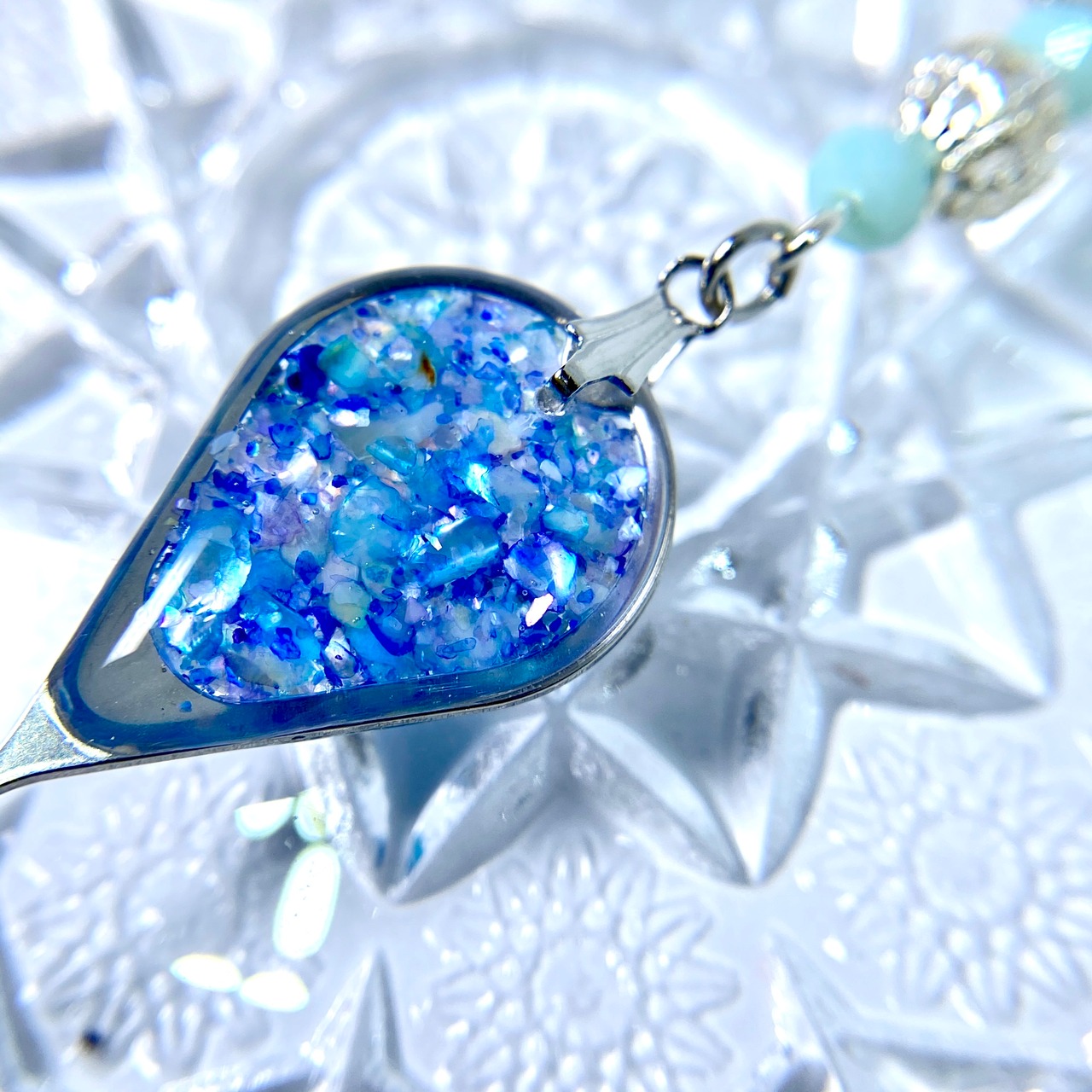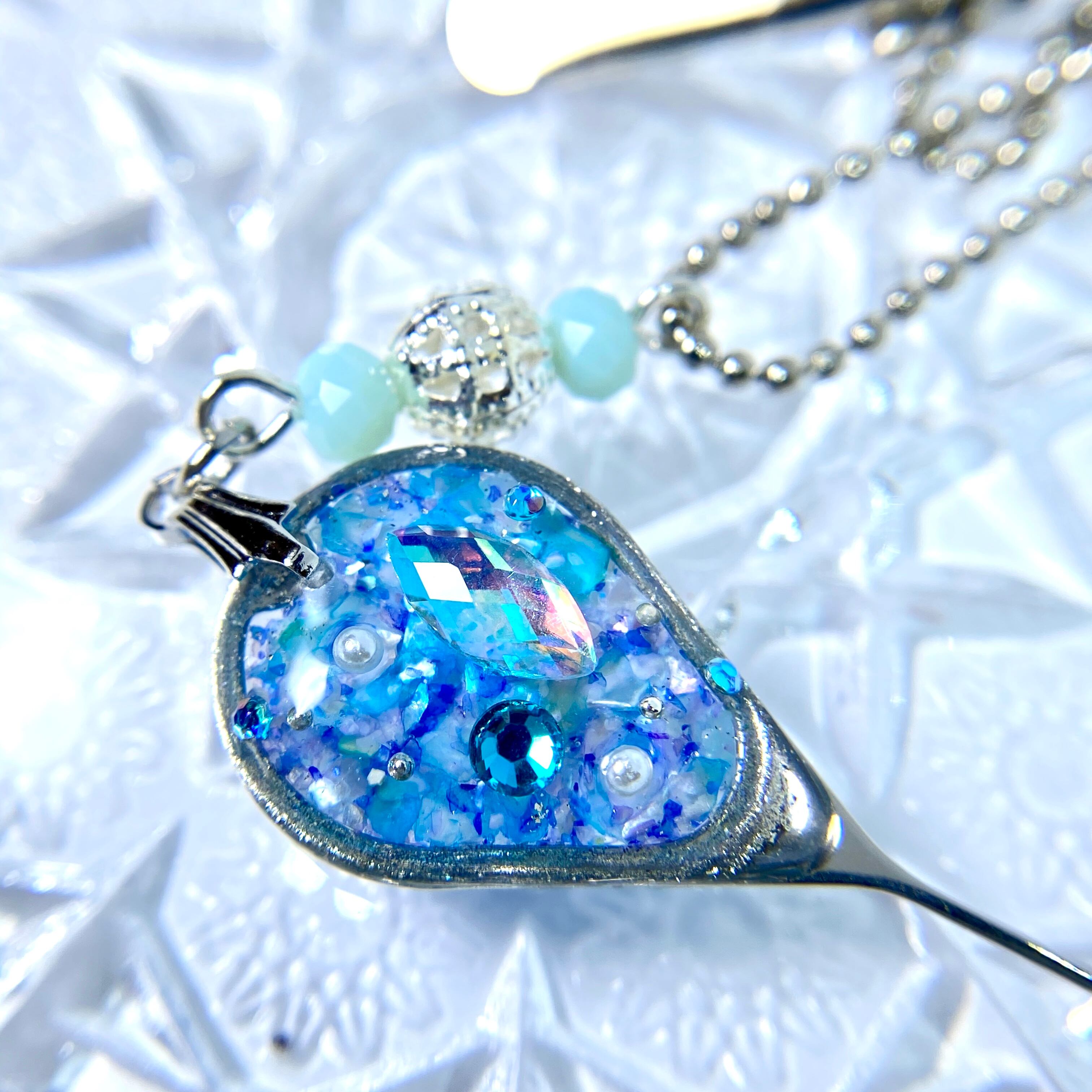 ブルー系のシェルをミックスしパールやオーロラビジュー、ストーンなどで華やかに仕上げました
