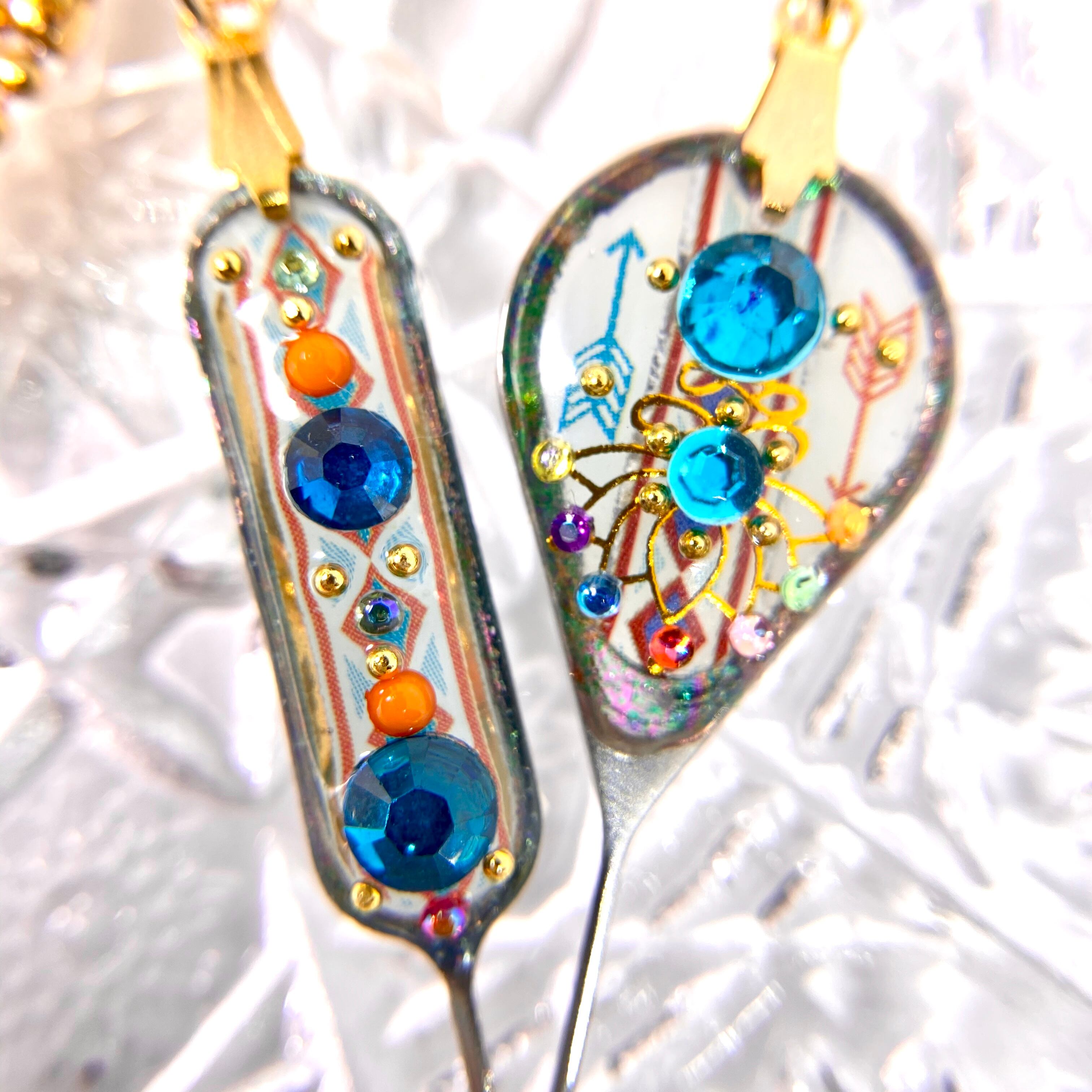 繋ぎパーツもカラーガラスビーズ異色使いとゴールドビーズで華やかに仕上げました☆。.:*・゜