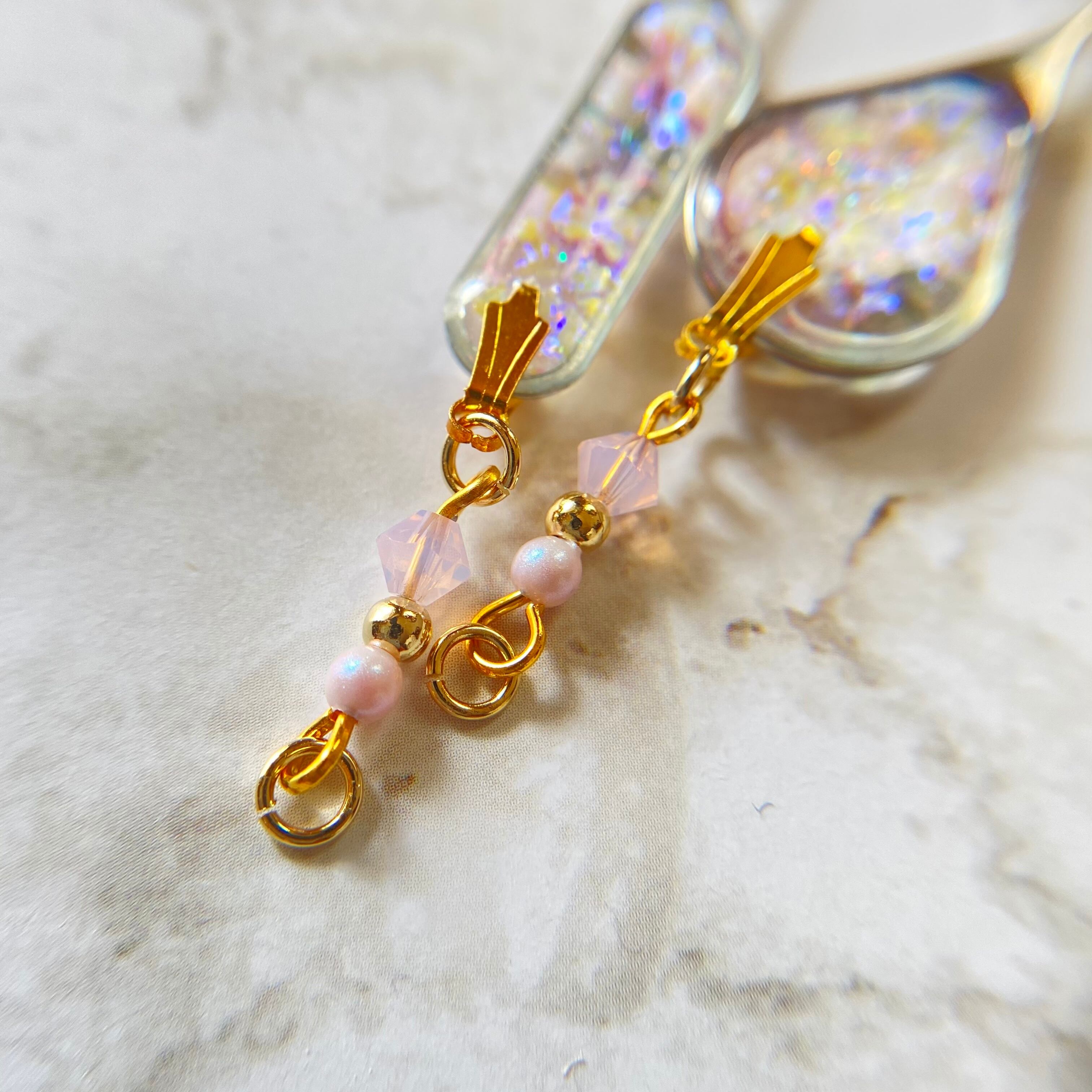 繋ぎはローズウォーターオパールのスワロフスキービーズとドリーミーローズのパールです☆。.:*・゜