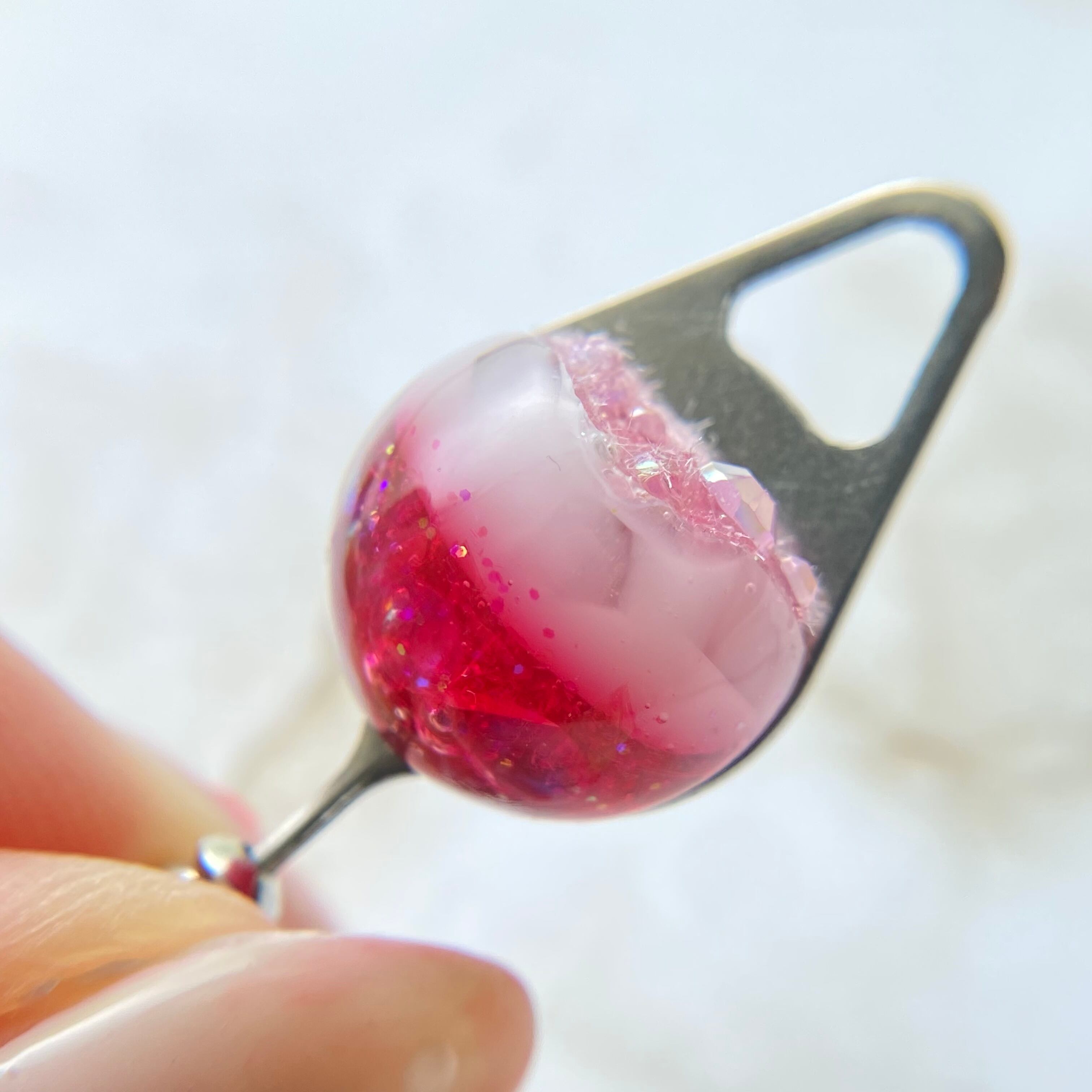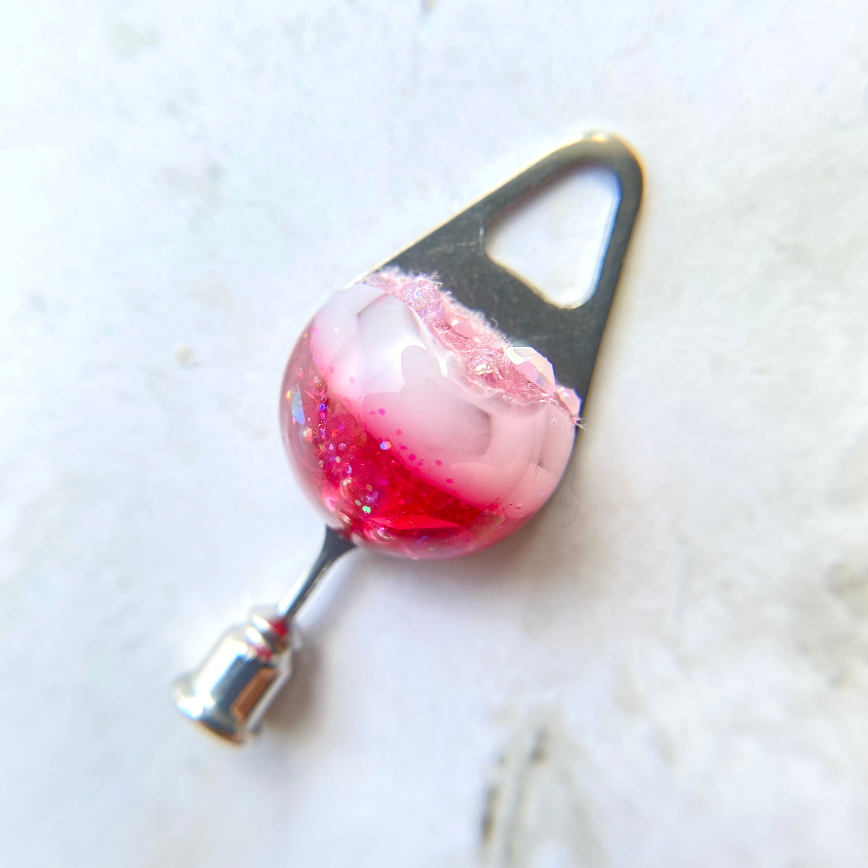 ボールチェーンを付け、更に無くさないよう胸ポケットやノートなどに挟める上品なドレスクリップ金具付きです☆。.:*・゜