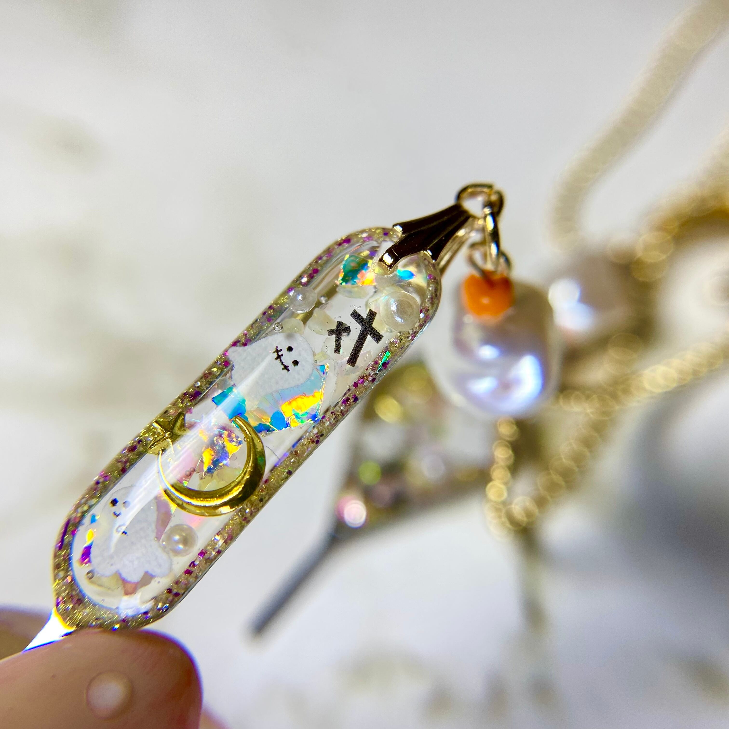 クリアベースのシンプルなシェルとオーロラの中を可愛らしいおばけさんがお出かけ中です